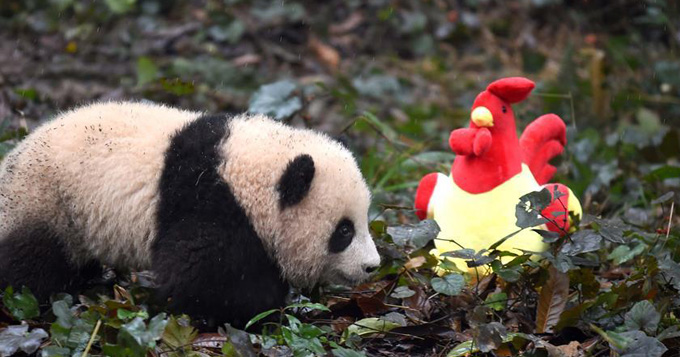 استبق المركز الصيني لحماية ودراسة الباندا العملاقة الاحتفال بعيد الربيع الصيني وفعاليات عام الديك بإظهار ثمانية من الباندا العملاقة التي ولدت عام 2016 بالمركز.