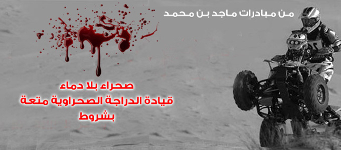 بتوجيهات من سمو الشيخ ماجد بن محمد بن راشد آل مكتوم رئيس هيئة دبي للثقافة والفنون، انطلقت يوم الأربعاء 09/02/2011 مبادرة (صحراء بلا دماء) للحد من الحوادث الكثيرة والمستمرة للدراجات النارية الترفيهية وخاصة في مواسم الإجازات والأمطار. والتي ينتج عنها سنويا الكثير من الوفيات بين شباب الوطن العربي، بالإضافة إلى الإصابات البليغة والعاهات المستديمة.