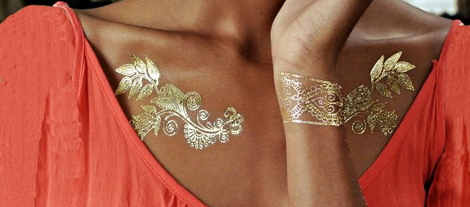 وهي عبارة عن رقاقات متلألئة على شكل مجوهرات يتم لصقها على الجلد، ويوجد منها رقاقات من الذهب الحقيقي عيار 24 قيراط أو من الفضة عيار 999 جرام.
