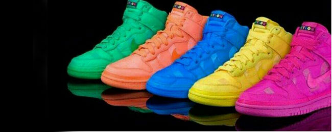 فواجهات المحلات في مراكز التسوق في مدينة دبي مليئة بالأحذية الرياضية ذات الألوان الصارخة ونقدم إليك بعض النصائح حول إرتداء هذه الأحذية :