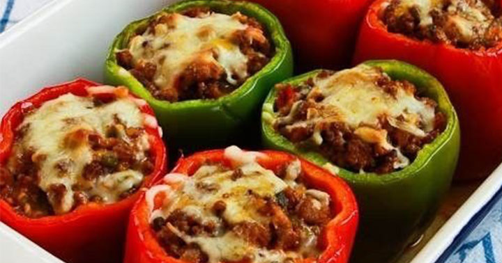المقادير: 1 كيلو لحم مفروم، مطبوخ مع بصل ومتبل بالملح والفلفل 6 حبات فلفل رومي، محفورة 6 شرائح لازانيا، جاهزة للطبخ 1 علبة صلصة طماطم للحشوة: 15 أونصة جبن ريكوتا 1 كوب جبن موزاريلا مبشور، مع كمية إضافية للزينة 1 كوب جبن بارميزان مبشور، مع كمية إضافية للزينة ¼ كوب سبانخ مطبوخ، مفروم ناعماً 1 بيضة ملح وفلفل حسب المذاق