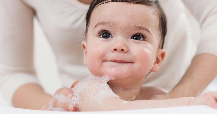 اشطفي جسم الطفل بشكل كامل بالماء النظيف وتأكدي من درجة حرارته قبل سكبه على جسد طفلك، أزيلي آثار الصابون تماماً عن جسده.