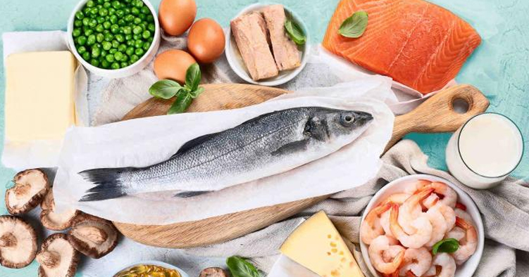 أشعة الشمس والأسماك الدهنية مثل السالمون و السردين والتونة والماكريل واللحوم والبرتقال والبيض والحليب والأجبان وكبد الأبقار.
