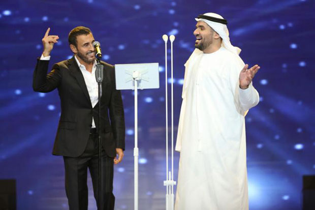 وبعد دقائق صعد على المسرح النجم الإماراتي حسين الجمسي، وقدم مع الساهر الاغنية المشتركة، قبل أن يغني مجموعة من أغنياته الخليجية الشهيرة.
