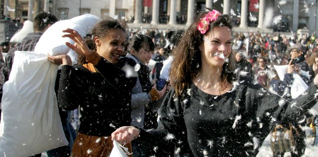 حرب الوسائد تشتعل في ألمانيا و الريش يتطاير في الشوارع