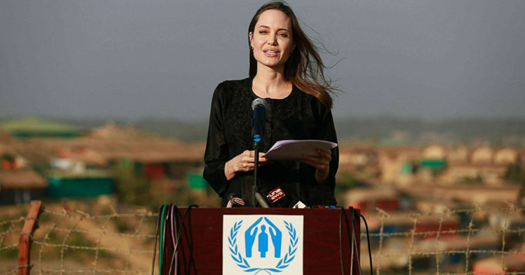 قامت الفنانة الأمريكية أنجيلينا جولي المبعوثة الخاصة للمفوضية السامية للأمم المتحدة لشؤون اللاجئين، بزيارة مخيمات اللاجئين الروهينغا في بنغلاديش للوقوف على أوضاعهم وتقييم احتياجاتهم الإنسانية.