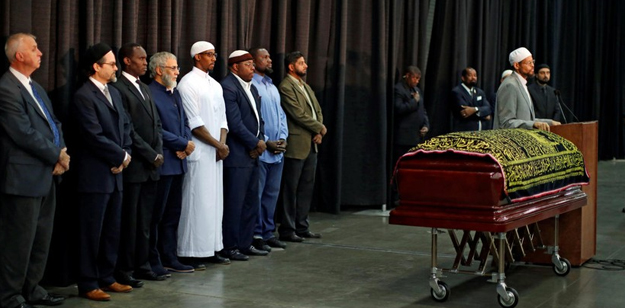 وتدفق آلاف الأشخاص أمس الخميس إلى ساحة رياضية في لويفيل، حيث استمعوا إلى أدعية وتلاوات من القرآن.