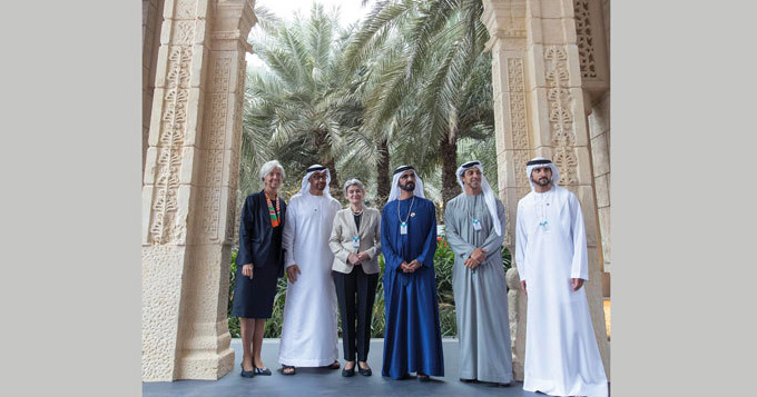 وصاحبت سموهم، المديرة العامة لمنظمة الأمم المتحدة للتربية والعلم والثقافة (يونسكو)، إيرينا بوكوفا، في تدشين القوس المطبوع التاريخي، البالغ من العمر 1800 عام، والذي هدمه الإرهاب في مدينة تدمر السورية عام 2015، واستخدمت تقنيات متقدمة لتصوير ومسح وتخزين مليون صورة من آثار وحضارة المنطقة، حفاظاً عليها لمستقبل الإنسانية.