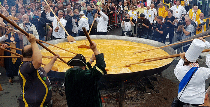 وتجمع مئات الأشخاص في بلدة مالميدي بشرق بلجيكا غير آبهين بهذه المخاوف وقالت بندكته ماثي رئيسة الفرع المحلي لنادي العجة العملاقة إنها واثقة من أن طبق اليوم آمن تناوله.