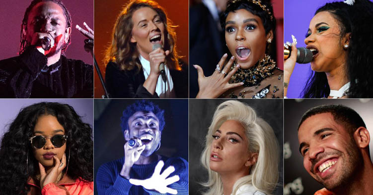 يذكر أن المغني جاي زي زوج الفنانة بيونسيه كان قد هيمن على جوائز ترشيحات أعلى ثلاث فئات العام الماضي، بينما رشّح كل من دريك، ولامار، وكارلايل لأفضل تسجيل، وأفضل أغنية، وأفضل ألبوم.