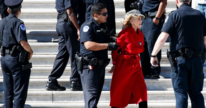 اعتقلت الشرطة الأمريكية الممثلة الشهيرة جين فوندا على خلفية مشاركتها في اعتصام ضد ظاهرة الاحتباس الحراري.