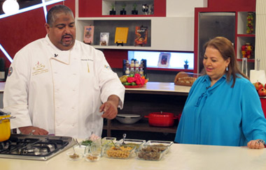 ويقدم الشيف مصبح الكعبي طبخات ماراتية (شوربة البقوليات / كوكتيل الصيف البارد / سلطة الجذور / ثريد دجاج بالليمون المجفف / عصيدة قرع بالزعفران )