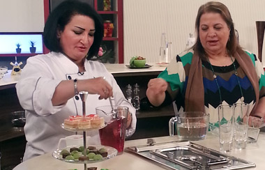وتقدم الشيف سلوى العريفي طبخات بحرينية ( عصير البريهو بالورد / مجبوس هامور / كباب بحريني / رنقينه)