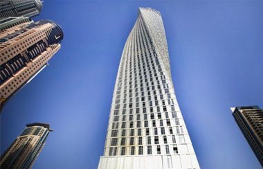 برج كيان أيقونة معمارية ترقص وتلتف حول محورها،