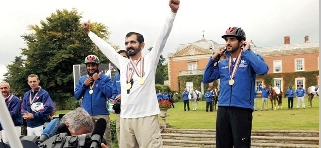 وتُوِّج فارس العرب صاحب السمو الشيخ محمد بن راشد آل مكتوم، أمس، في حفل عالمي أقيم أمس في أوستن بارك في بريطانيا، بذهبيتي بطولة العالم للقدرة 2012 لمسابقتي الفردي والفرق، كما تُوِّج فرسان الإمارات بالميداليات الذهبية لبطولة الفرق.
